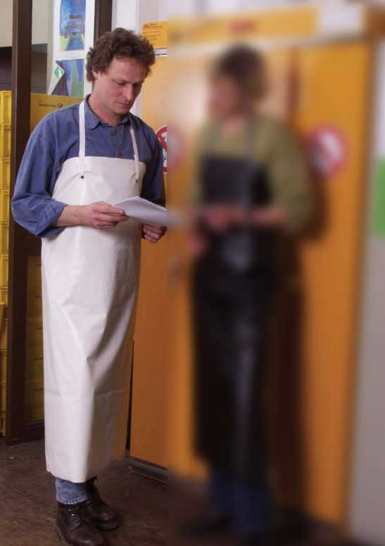 - Deze beschermende kleding voldoet aan EN 14605 types PB (3) en PB (4) en garandeert de bescherming van een deel van het lichaam tegen chemicaliën, evenals in combinatie met EN ISO 13688, de algemene eisen voor beschermende kleding. De beschermende werking is gecontroleerd op natronloog 40%, zoutzuur 32%, salpeterzuur 65%. Guttasyn-chemicaliënbeschermingsschorten zijn niet geschikt voor omgang met hitte en open vuur.